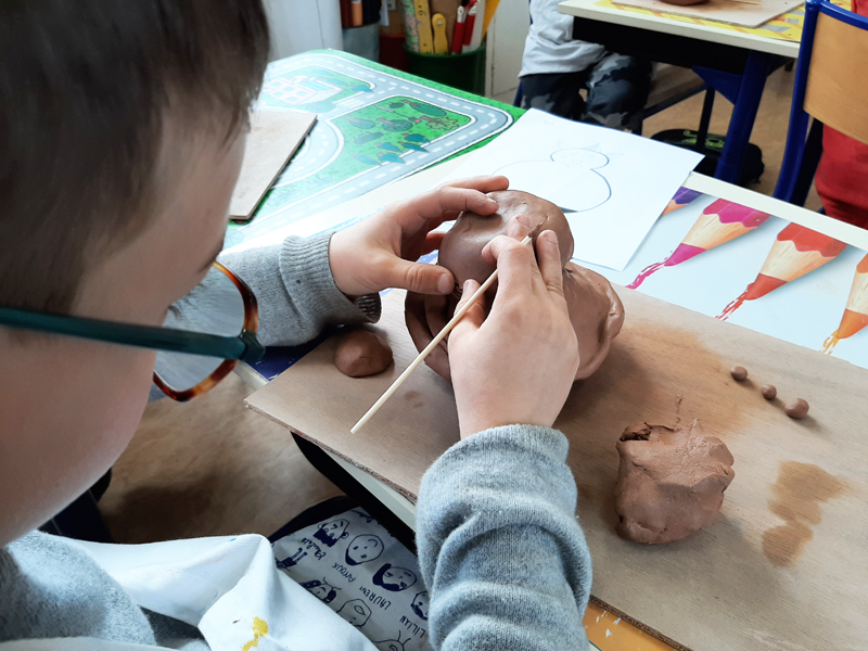 Les élèves de CE1 de l’école de Nontron ont découvert le travail de la céramique auprès de Céline Giry. Après une séance rencontre/démonstration/initiation, ils ont chacun créé un culbuto inspiré de l’histoire « Etoile » d’Alan Mets.