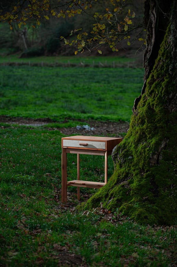L’approche environnementale est essentielle pour Alain et il se fournit uniquement en bois massif auprès de scieurs, locaux de préférence. L’alliance des plus belles essences de bois fruitiers et locaux participe à l’identité visuelle de sa production.