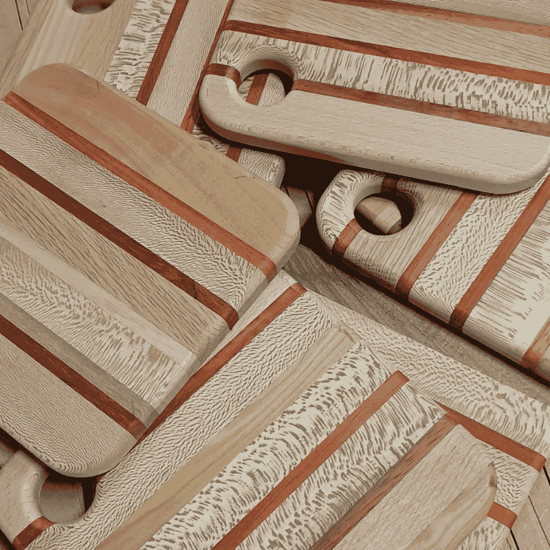 Durant ce laps de temps, petit à petit, il a pu s’équiper d’outillages professionnels plus performants qui lui ont permis de réaliser ses créations artisanales d’objets utiles en tous genres : jeux, plateaux, planches à découper, lampes, décorums…